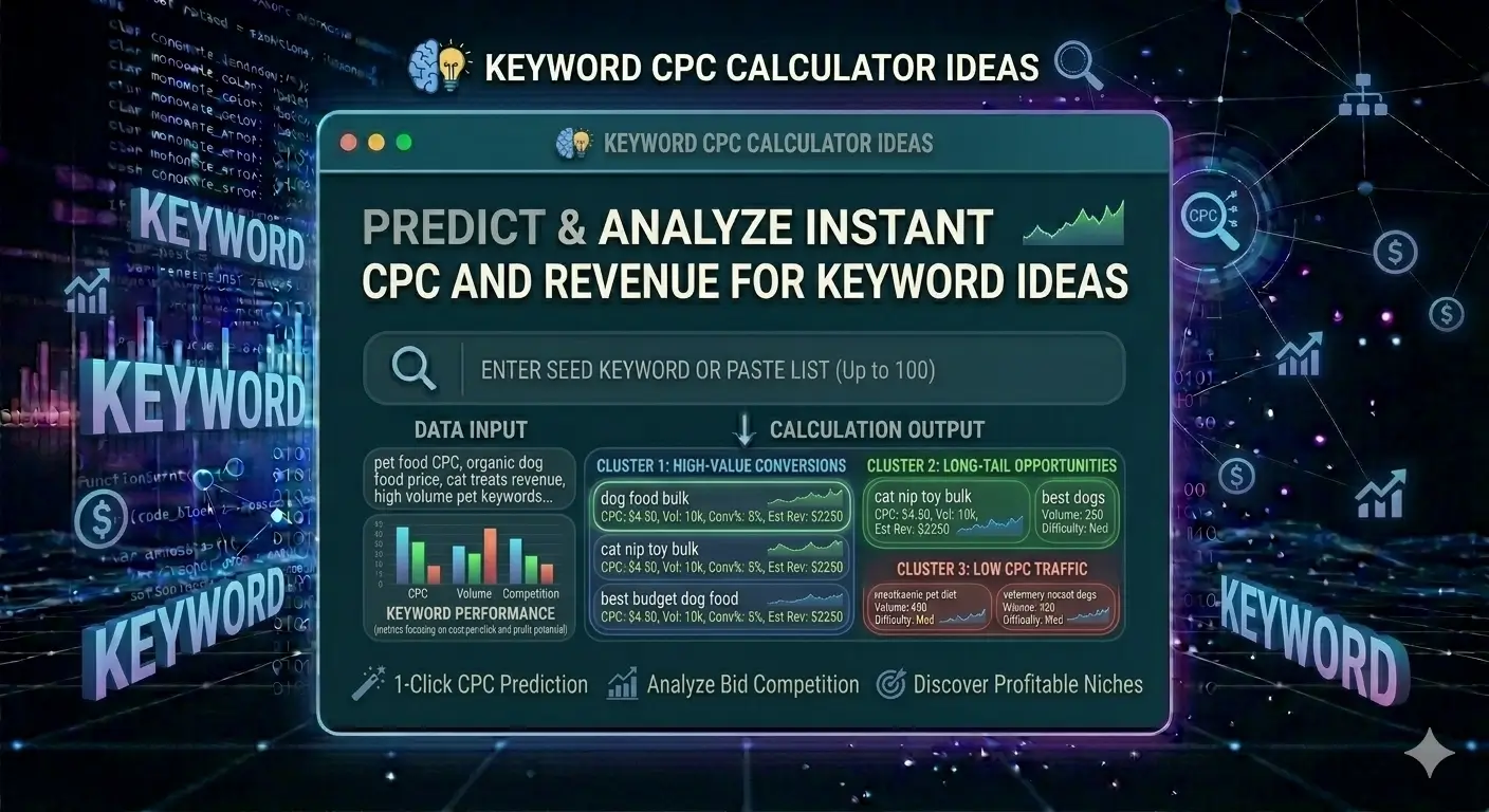 Keyword CPC Calculator April 10, 2026 by proadsflexofficial Keyword CPC Calculator | SEO Toolkit 💰 Keyword CPC Calculator Estimate cost-per-click based on keyword commercial intent & competition. 🔍 Keyword 📊 Industry / Competition Level Low competition (e.g., long-tail, niche) Medium competition (moderate CPC) High competition (competitive, high CPC) 💵 Calculate Estimated CPC